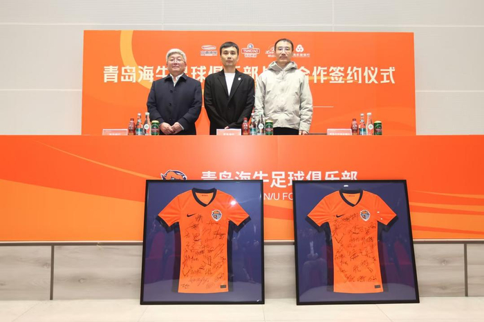作为本次活动的重要环节,青岛海牛足球俱乐部与青岛啤酒股份有限公司、青岛饮料集团有限公司、青岛银行股份有限公司、青岛农商银行股份有限公司完成了签约仪式。新赛季,青岛饮料集团旗下的崂山可乐将正式成为球队球衣的胸前广告,俱乐部自2023赛季重返中超以来告别胸前“裸奔”时代;青岛啤酒股份有限公司的崂山啤酒将继续为球队球衣的臂章广告;青岛银行及青岛农商银行则是俱乐部重要的战略合作伙伴。
